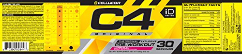 C4 Original is a pre-workout powder that energizes your workouts and takes your fitness to the next level. C4 Original's high-powered formula features a special blend of patented ingredients that put the edge in energy and performance. When to take C4: You need energy. You want to have a great workout. You want to push yourself to reach new goals. Why C4 Original? C4 Original's formula includes ingredients that help promote energy, pumps and performance. TeaCor for improved energy that comes on quickly and lasts longer. Beta Alanine: An amino acid that supports muscular endurance. Beta Alanine produces a tingly sensation throughout the body that lets you know it's working. Creatine Nitrate: Creatine bound to Nitrate. Creatine Nitrate produces two desirable effects on performance: Creatine for strength and Nitrate for pumps. N-Acetyl L-Tyrosine: It is a core part of the essential energy blend. It helps support peak mental and physical performance. Caffeine: A popular and proven source for energy. ‡Based on sales of C4 branded pre-workout products in the U.S.A. from 2014 to the present, C4 is America’s #1 Selling Pre-Workout.Feature