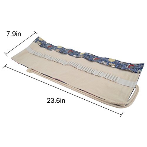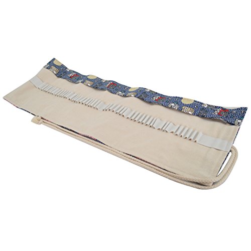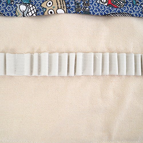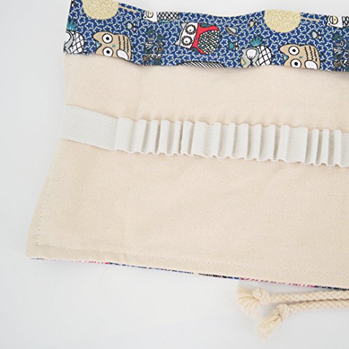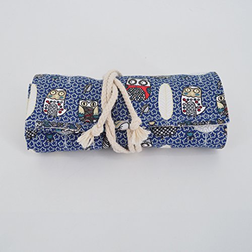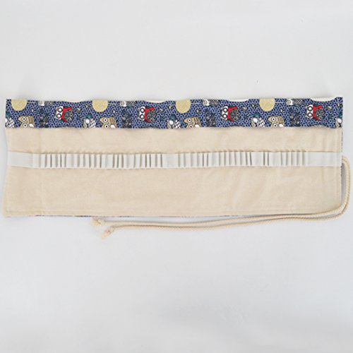 48 Slots Cartoon Owls Pattern Canvas Roll Pencil Wrap Drawing Pencil Holder(Blue)
