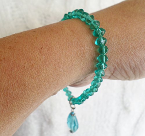 -. Title : 7" blue plastic and glass beads stretch bracelet