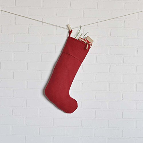 VHC Brands Festive Burlap Stocking, 20" x 11", Red