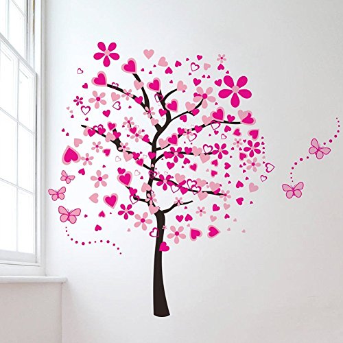 -. Title : Amaonm® Removable Cartoon Pink Heart Peach Tree Wall Decals Butterfly Flowers Wall Decor Decorative Painting Supplies Wall Treatments for Girls Kids Living Room Bedroom Offices Classroom