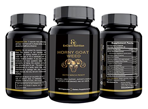 BOOST YOUR PERFORMANCE WITH TRADITIONAL EASTERN HERBAL INGREDIENTS- Experience the ancient power of sexual enhancement boosters, Maca Root Complex, Tongkat Ali Powder, Saw Palmetto, L-Arginine, Ginseng, and more. Guaranteed to get you in "the mood." Horny Goat Weed is an excellent source of Icariins, which has been proven in some tests to help with sexual problems and to increase libido and sexual desire. EnClare has formulated a unique blend of herbs to work alongside with our potent and pure Horny Goat Weed extract to ensure you experience all the benefits, including increased stamina, improved libido, and higher energy levels.