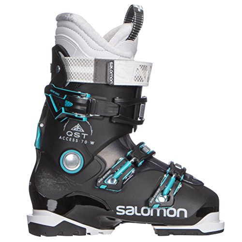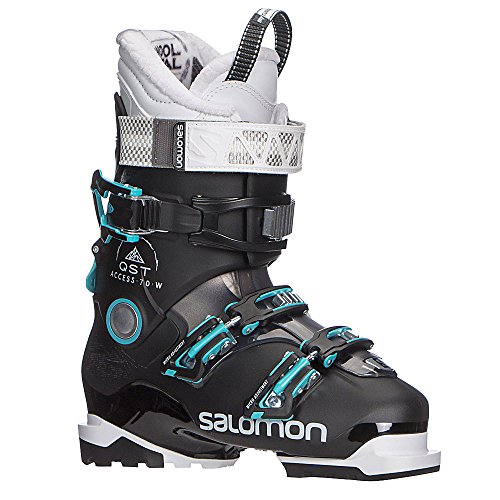 Studio : Salomon Publisher : Salomon Binding : Misc. Product Description The Salomon QST Access 70 W is a perfect choice for the athletic beginner to solid intermediate skier with a medium to wide forefoot and medium to wide leg shape. The 24mm Oversized Pivot is a strong connection between the upper cuff and lower shell that drives energy to the edges of your skis. A Women's Specific Low Cuff is designed for the shorter, fuller female leg shape. The upper cuff buckle has a ratchet buckle that makes for a simple and easy adjustment for even the largest of calf shapes. Woolmetal Insulation in the liner is a blend of wool and metallic polyester that has excellent insulation properties to keep your feet warmer on cold days. Salomon's Ride Hike Technology has a lever located on the back spine of the boot that allows you to flip the switch for easy walking. If you want a forgiving and relaxed fitting boot for wide feet and large calves, the Salomon QST Access 70 W will be a great selection. Features: 24mm Oversized Pivot Actual Flex: 70, Cuff Alignment: None, Warranty: One Year, Ski Boot Width: Wide (104-106mm), Flex: Medium, Used: No, Ski/Walk: Yes, Forefoot Width: 104mm, Flex Adjustment: No, Buckle Count: 3, Category: Downhill, Ski Gear Intended Use: All Mountain, Instep Height: Medium, Calf Volume: High, Skill Range: Beginner - Advanced Intermediate, Model Year: 2018, Product ID: 493360, Model Number: L39936600235, GTIN: 0889645327259 0