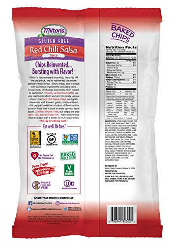 - Milton's gluten free baked chips, red chili salsa, 5.5 ounce bag