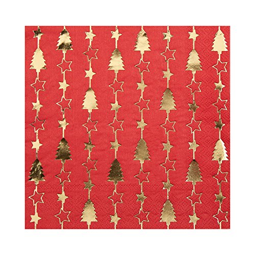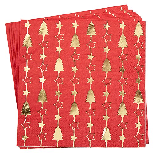 Neviti 772225 Dazzling Christmas Red and Gold Foil Trees Paper Napkins