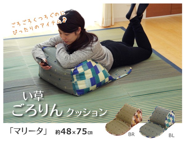 【商品名】クッション ごろ寝クッション ごろ寝枕 い草枕 『マリータ ごろりん』 ブラウン 約48×75cm