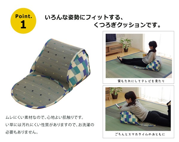 【素材】表地=い草※普通織 中材=頭部:発泡ビーズ 胴部:ウレタン 裏地=ポリエステル100%