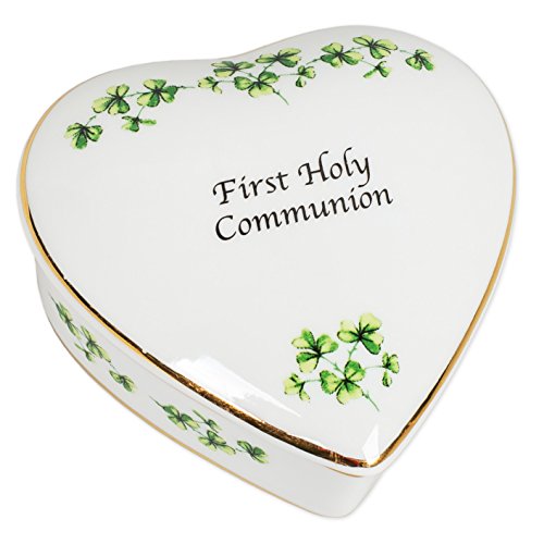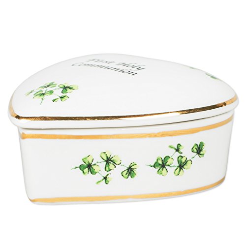 First Holy Communion Irish Shamrocks Porcelain Heart Shaped Keepsake Box