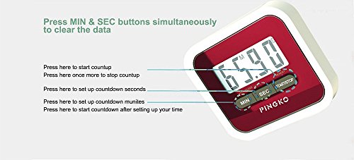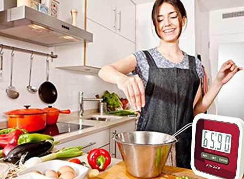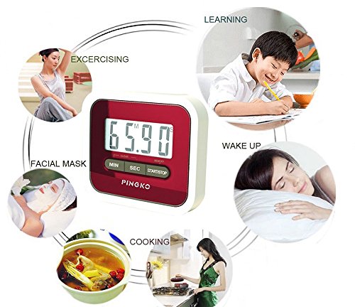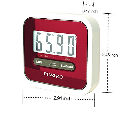 -. Title : PINGKO Digital Kitchen Timer, Countup & Countdown Timer with Clock Maximum to 99 Minutes 59 Seconds - Red