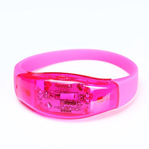 massmall Vibrate Rock Led Bracelet Cool Vibrate Activated LED Glowing Bracelet Wristband for Party /Disco /Bar-The Louder the Virate the Brighter It'll Flash It's Lights(Pink)