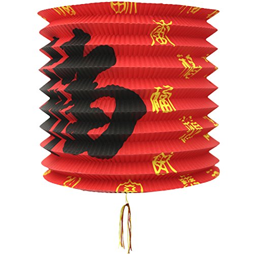 This pack of twelve Chinese New Year lanterns is a colorful and whimsical addition to any style of décor. The crinkly, accordion style red paper lanterns are adorned with a black Chinese good luck character and gold tassels. Traditionally raised for good luck and prosperity, they make a wonderful accent indoors.Feature