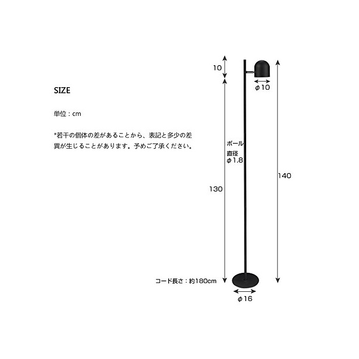 【사이즈】높이:약140cm,베이스 직경:16cm,쉐이드 직경:16 cm,코드의 길이:약180cm