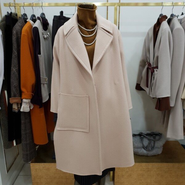 울,캐시미어 혼방 소재의 보온성과 부드러운 터치감과 체형이 보완되는 스트레이트한 실루엣에 오버핏으로 스몰 77사이즈 착용자 분들 까지 착용 가능한 아이템 입니다
