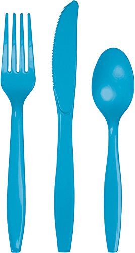 Touch of Color Premium Plastic Cutlery Assortment (Forks, Spoons, Knives), Turquoise, 24-Count