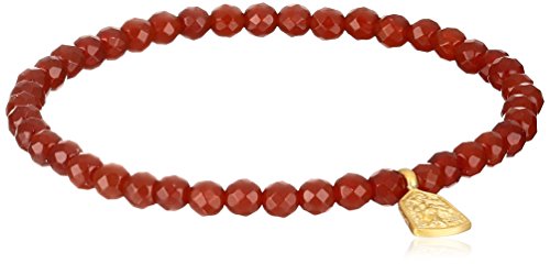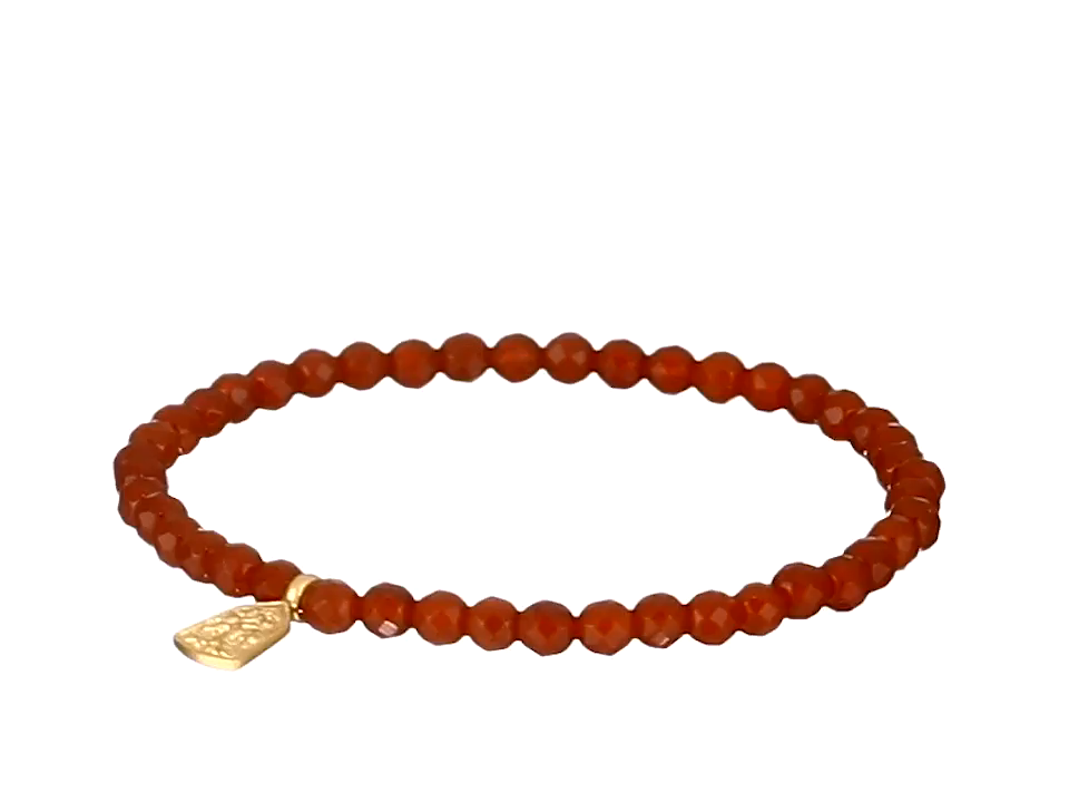 Adorn your wrist with this stretch bracelet featuring deep red carnelian beads and a cast golden charm for a burst of color.