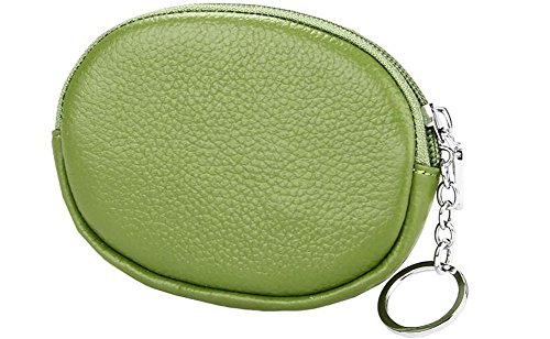 ETIAL Womens Real Leather Mini Wallet Zip Around Coin Purse with Key Ring Green