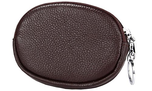 ETIAL Womens Real Leather Mini Wallet Zip Around Coin Purse with Key Ring Coffee