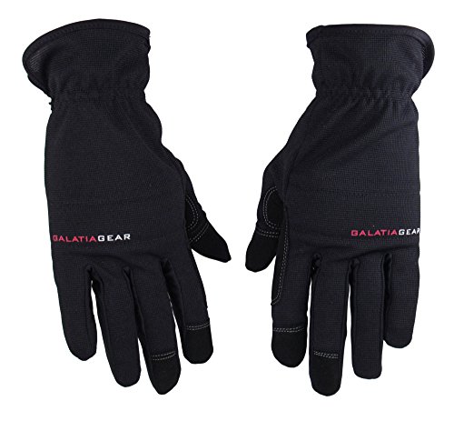 Galatia Gear Work Gloves- Nubuck Leather Palm with Reinforced Vibration Pads, Flexible Spandex Backing with Elastic Wrist Cuff- Black/Gray- [Medium]