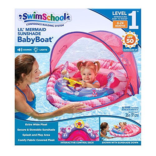 Studio : Aqua Leisure-Domestic Toys Publisher : Aqua Leisure-Domestic Toys Binding : Toy Product Description Welcome aboard! The SwimSchool Lil’ Mermaid Baby Boat introduces baby to water in an adorable mermaid themed boat! Stimulating baby’s senses through sights, sounds, and touch, this little boat beeps, squeaks, honks, and lights up. The fabric boat features an extra wide base for added stability, UPF50 retractable canopy, and comfortable seat making it the perfect way to enjoy the water. The BabyBoat is a key part of the SwimSchool Training System by Aqua-Leisure. 0