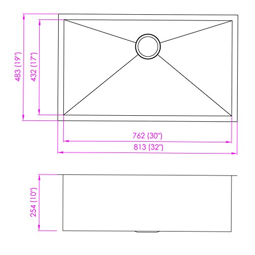Moinse 32”inch Single Bowl Kithcen Sink T-304 Stainless Steel Lead Free Handmade Home Sinks 32"X19"X10"Inch Ktichen Sink
