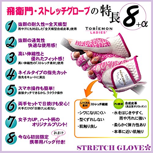 R & A 공인 골프 장갑 양손 용 네일 & 전천후 스트레치 장갑 TBGV-L-DL 화이트 핑크 L 사이즈 (20-21cm)