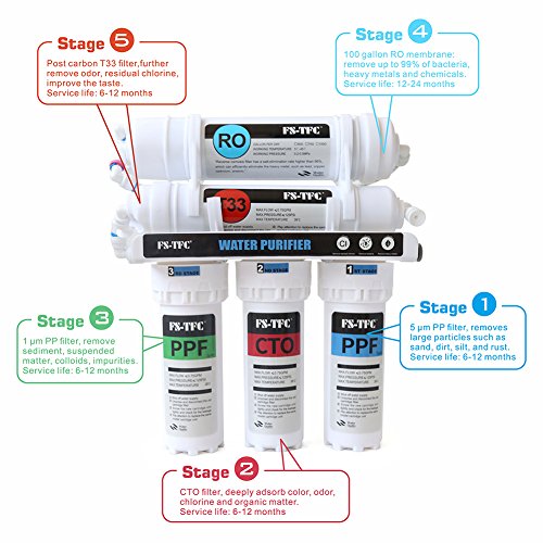 FS-TFC Reverse Osmosis 100 GPD 5-Stage Drinking Water Filter System Plus Extra Set of 4 Replacement Filter (FS-RO-100G-A)