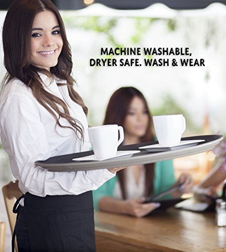 3-Pocket Black Waist Aprons (4-Pack); Restaurant Quality Utility Half Aprons for Servers, Craftspeople, Chef, Baker, Bartender to Hold Checks, Tips, Tools & More, 24” Wide by 12” Long Apron