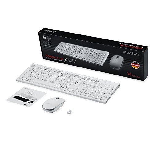 Perixx PERIDUO-711, Wireless Keyboard and Mouse Combo - Nano Receiver - Big Print Letters - White