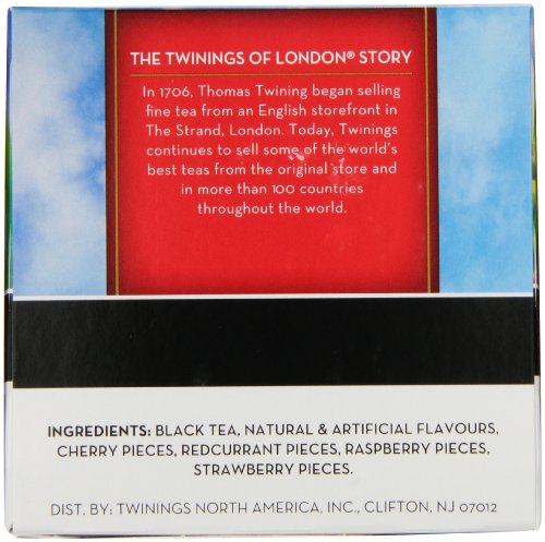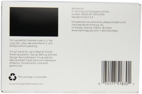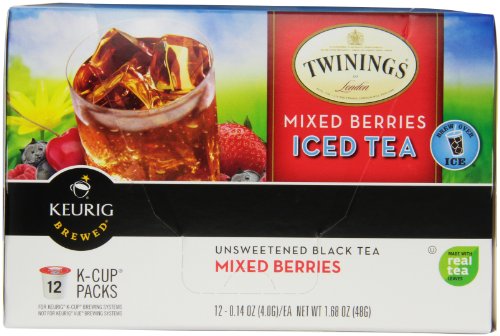 -. Binding : Grocery -. Brand : Twinings -. Feature : In 1706 Thomas Twining started selling fine tea in England / Today, Twining's travels thousands of miles through exotic green tea gardens across many continents to capture the best possible teas and flavors; With expert blending, Twining's creates the richest journey in black, green and herbal teas -. Label : Twinings of London -. Manufacturer : Twinings of London -. NumberOfItems : 6 -. PackageQuantity : 6 -. ProductGroup : Grocery -. ProductTypeName : GROCERY -. PublicationDate : 2013-11-25 -. Publisher : Twinings of London -. ReleaseDate : 2013-11-25 -. Studio : Twinings of London -. Title : Twinings of London K-Cup Portion Pack for Keurig K-Cup Brewers Iced Tea, Mixed Berries, 72 Count (Pack of 6)