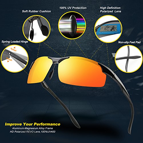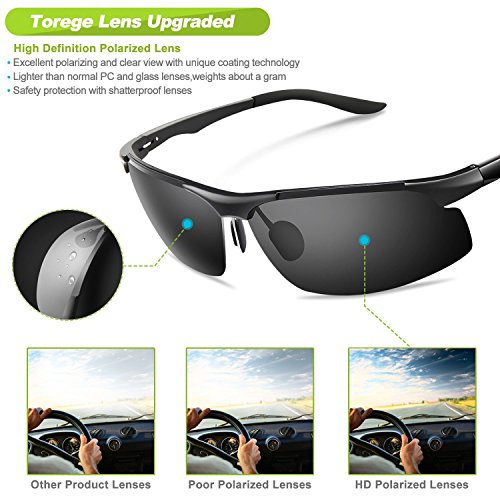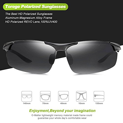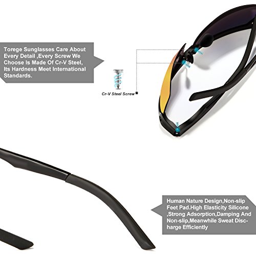 -. Feature : POLARIZED LENS- 100% UV400 protection coating, blocks 100% harmful UVA & UVB Rays. Restore true color, eliminate reflected light and scattered light,make the scenery more clear and soft and protect eyes perfectly. TAC lens includes 7 layers. The 1st layer is polarization layer. The 2nd and 3rd layers are bonding layers to enable durability. The 4th and 5th layers are UV protection layers to absorb UV light. The 6th and 7th layers are shatterproof layers. / LIGHTWEIGHTi AL-MG Alloy Design Is Ideal For Usage By Motorcycle And Cycling Bicycle, Driving, Running, Fishing,Racing, Skiing and Climbing, Trekking Or Other Outdoor Activities Enthusiasts.Polycarbonate lens and frames are impact, scratch resistant, durable and unbreakable. / SOFT RUBBER NOSEPAD,Let Your Nose Feel Comfortalbe While Wearing Torege Sports sunglasses for Cycling Running Fishing Golf . / LIFETIME BREAKAGE WARRANTY ON FRAME- Frames and lens are unbreakable for no risk purchasing. In case any broken problem happens, contact the seller of Torege without hesitation to solve the problem until satisfaction. Torege provides lifetime after sale service for all Torege products. / 30 DAY MONEY BACK GUARANTEE- All Torege customers enjoy 30 Day Money Back Guarantee. Customers can return and get refunded in case the purchasing is not satisfactory for any reason. You have no risk to try.