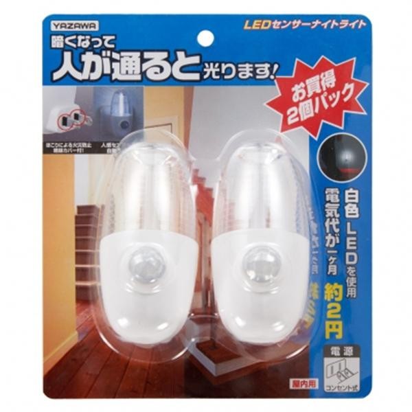 人感・明暗センサー搭載。暗くなって人が通ると点灯します。LED一体型です。 製造国:中国 素材・材質:ABS樹脂 商品サイズ:W45mm×H95mm×D70mm 重量:55g 仕様:●定格電圧:AC100V●周波数:50/60Hz●定格消費電力:約0.2W●検知方法:人感・明暗センサー●光源寿命:約40000時間 ※サプライヤー直送品 ご注文後2~3営業日後の出荷となります【商品名】YAZAWA(ヤザワコーポレーション) LEDセンサーナイトライトホワイト2個入 NASMN01WH2P