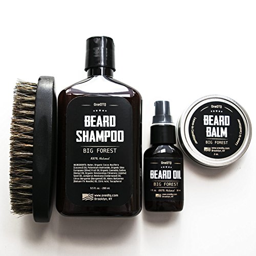 Big Forest Beard Grooming Kit: Beard Growth - Beard Shampoo 9.5 fl oz, Beard Oil 1 fl oz, Beard Balm 2 oz, Beard Brush - Wood Scent - Comes as a Beard Grooming Gift Box - Make a beardsman happy! A very manly kit that's a great gift for a beardsman or a real treat for yourself.