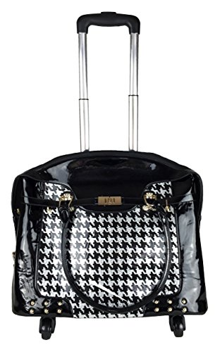 -. Binding : Electronics -. Brand : Trendy Flyer -. Color : Black, Silver -. EAN : 0746839982901 -. Feature : Color: Black and Silver / Material: Polyurethane/ Pattern: Houndstooth / Size: 17" H (include wheel) x 19" L x 8" W/ Weight: 6.5 lbs / Padded laptop area can fit laptop 13" wide, 10" tall and 1.5" thick using securing velcro straps / Padded laptop area can fit laptop 13" wide, 13" tall and 1.5" thick without using securing velcro straps / Additional Info: Height From Top of Handle to Floor with Handle Fully Extended: 38" -. Label : Private -. Manufacturer : Private -. PackageQuantity : 1 -. ProductGroup : PC Accessory -. ProductTypeName : CARRYING_CASE_OR_BAG -. Publisher : Private -. Studio : Private -. Title : Trendy Flyer 18" L Computer/Laptop Carry Bag Duffel Rolling 4Wheel Spinner Lage Houndstooth Silver -. UPC : 746839982901