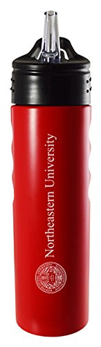 Northeastern University-24oz. Stainless Steel Grip Water Bottle with Straw-Red