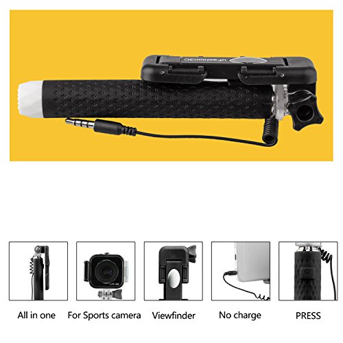 uFashion3C Mini Wired Selfie Stick with Mirror,Built-In Shutter Button for Gopro, iPhone 6,6s,6 Plus,6S Plus,SE,5S,5C,5,4S,4, Android Samsung Galaxy S5,S6,S7,S7 Edge,Note 3,4,5,7, LG G3,G4,G5 (Black)