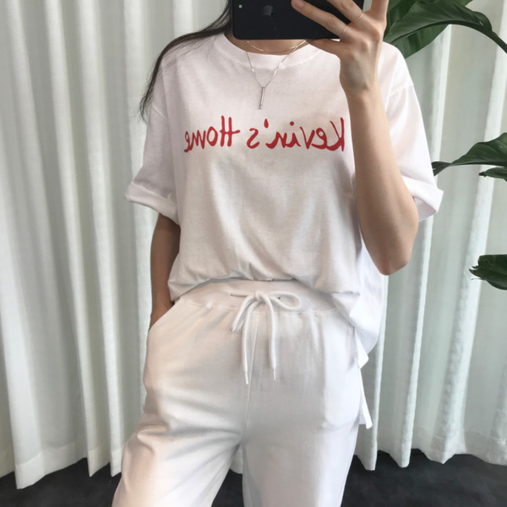 티셔츠 정면엔 레드 컬러의 레터링이 있구요
