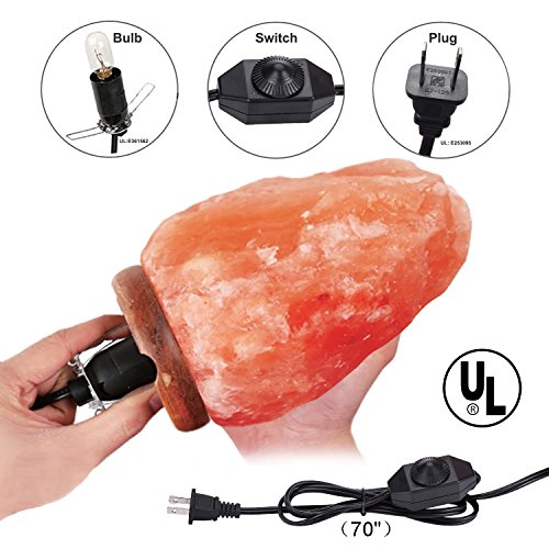 - 【Brightness Dimmable & UL Certified】- The brightness of the salt lamp can be adjusted according to your environment and mood. Our plug and lamp holder are UL approved, use without worries. Two extra bulbs are included for replacement.
