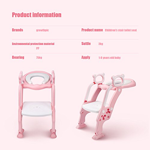 ---------GrowthPic CUSTOMER SERVICE--------- -?GrowthPic?7x24-hour message reply (Mon-Sun). -?GrowthPic?30-day money back and 12-month quality guarantee. -?GrowthPic?Hassle free replacement.? - Quality warranty is only valid with your purchase from GrowthPic. -----------Product Description---------- Features: Environmental protection.? GrowthPic toys are competitively priced with a 100% guarantee. Safety Tested (CPSIA): Tested Product Dimension: Potty ladder:14" x 25" Packing dimension:25" x 14" x 3" What's in the Box: Potty Ladder Leg x 2 Potty Seat x 1 Soft Cushion x 1 Plastic Cushion x 1 Screw Cap x 6 Velcro?Sticker x 3 Bear Coin x 1(Tighten the nut) Manual x 1? Recommended age: 24 months to 8 years old 0 |