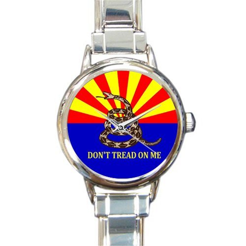 -. Title : Personalized Watch Gadsden Flag Don't Tread On Me Round Italian Charm stainless steel Watch