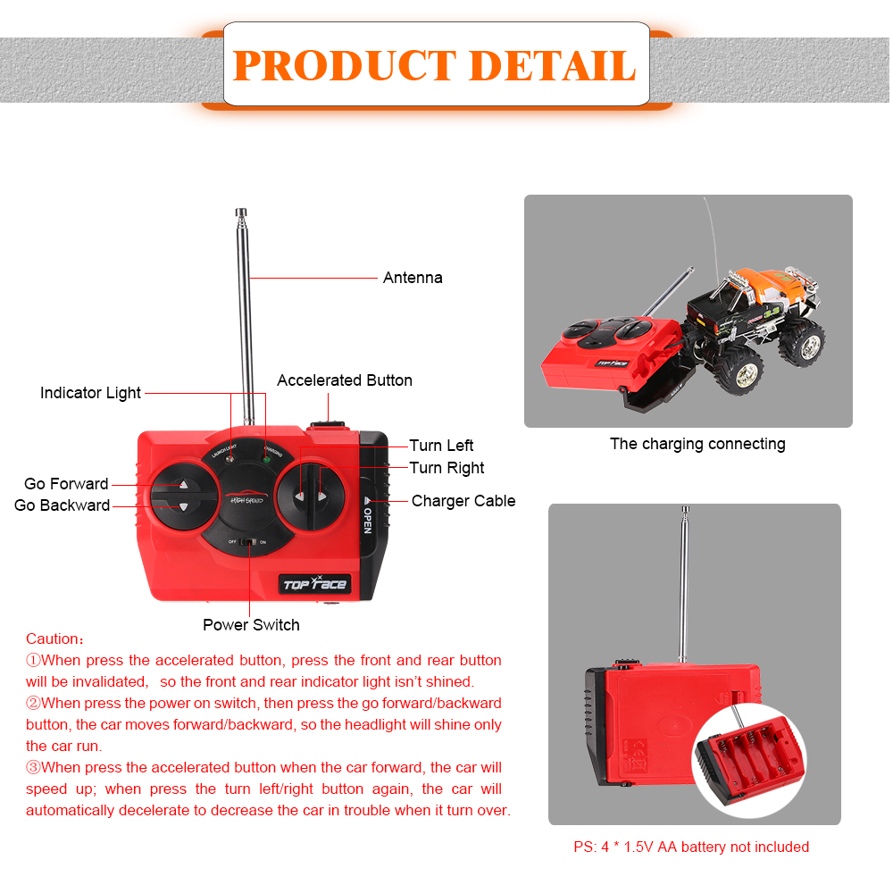 Function: forward, backward, turn left and right, light, brake.