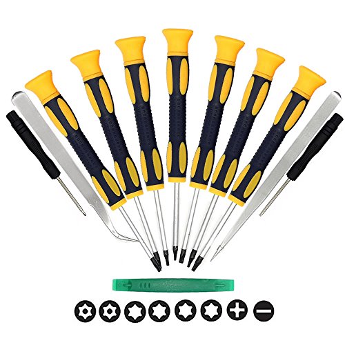 Kingsdun 12 in 1 Torx Screwdriver Sets with T3 T4 T5 T6 T7 T8 T10 Star Screwdrivers, Stainless Steel Tweezers & Philip Slotted Magnetic Screwdrivers for Phone/Mac/Computer Repairing