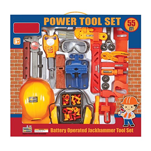 Product Description Here's a hardworking construction kit that's big fun for little ones! This jumbo toy tool kit comes with a wide assortment of safe, durable plastic tools for imaginative building fun. For children age 3 and older. Requires two AA batteries, not included. 0
