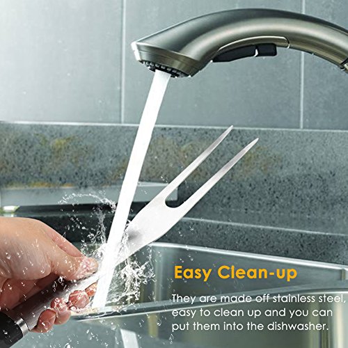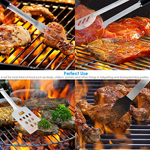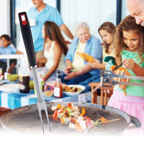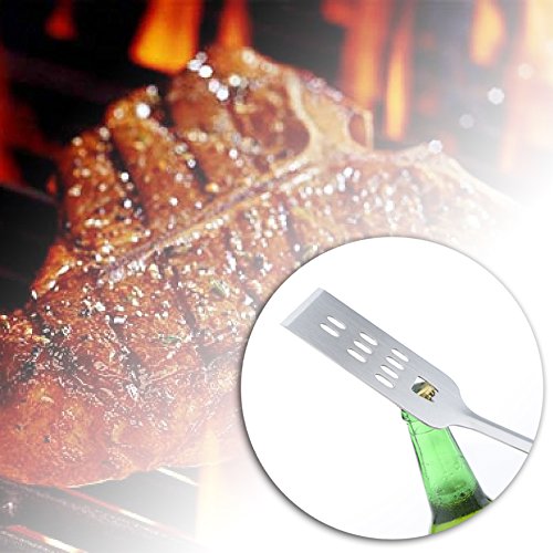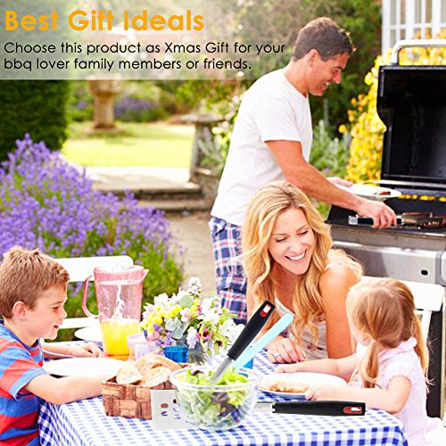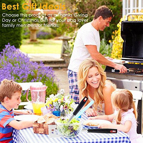 You get our heavy-duty, superior made tongs, spatula with serrated edges for tenderizing or cutting meat BBQ fork in this professional grade set. After just one grilling session with our grill tools you'll be looking forward to your next BBQ grilling session -This grill tool set is a MUST for the perfect barbecue grilling.