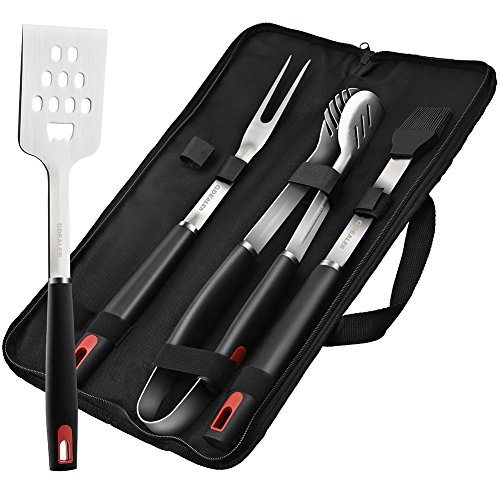 Studio : GDEALER Publisher : GDEALER Binding : Lawn Patio Product Description Description: GDEALER 4-Piece Stainless Steel Grill Set?includes tongs, barbecue meat fork, silicone basting brush, and grilling spatula that is perfect for tailgating and backyard parties.