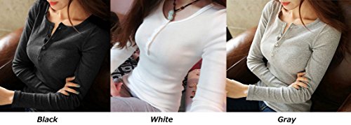-. Feature : フロントボタンがアクセントになったシンプルでフェミニンなデザインが人気の長袖 Vネック カットソー(Tシャツ)です。女性らしい柔らかい印象の深いVネックがデコルテをキレイに魅せてくれ、セクシーな大人感も漂わせるスリムでスタイリッシュな無地カットソー(ロンT)。肌ざわりのよい通気性抜群の上質なコットン素材が、軽くて着心地よくこの季節に大活躍間違いなしです☆ / 清潔感のあるカットソーは、女性らしいエレガントな雰囲気を醸し出し、清楚なきちんとコーディネートにも最適。カジュアルにもシックにも、取り入れるだけでオンナ度が上がる便利アイテムです。カジュアルなデイリーユースにも、ビジネス、オフィス、通勤、通学、デートにも。フォーマルやオケージョン(パーティ、結婚式、二次会、お呼ばれ、入学式、入園式、卒業式、卒園式、発表会、演奏会、七五三等)にも。ストレッチ素材で着やすく動きやすいので、スポーツやダンス、旅行やリゾートにも最適。 / 体のラインをスッキリ綺麗に魅せてくれるウエストシェイプのデザインは女性らしい細身の美シルエットを演出。ボトムにINしても、そのままさらりと着ても◎ スカートでもデニムでもOKで、ボトムスを選ばないのも嬉しいオシャレアイテム。デニム、ワイドパンツ(ガウチョパンツやスカーチョ)との楽ちんコーデや、キチンと感のあるタイトなボトムスと、ブーツやヒール、パンプスなどのシューズを合わせれば、ぴりっと辛口にまとまった、大人のカジュアルコーディネートが完成。 / 毎日着ても飽きのこない着まわし力の高いシンプルな定番デザイン。大人のカジュアルスタイルに重宝する人気の3カラー(ホワイト、ブラック、グレー)をご用意しています。春、夏はインナー(キャミソール、タンクトップ)の上に羽織って、袖を軽くロールアップしても。秋、冬にはやアウター(セーター チェスター トレンチ ダウン コート ジャケット)やファッション小物(ストール マフラー スヌード)などを合わせてコーデを楽しんでくださいね。 / リピ買い続出の人気アイテムでプレゼントにも◎♪ 年齢問わず(20代、30代、40代、50代)受け入れられる伸縮性のある素材でフェミニンなデザインのレディーストップス。ロングTシャツは季節問わず(春、夏、秋、冬)オールシーズン活躍すること間違いなしの便利アイテムです。 【カラー】ホワイト(白色)、ブラック(黒色)、グレー(灰色)【サイズ 】M、L、XL 【素材】コットン、ポリエステル、裏地:なし、付属品:なし   ※サイズ(寸法)をお確かめの上、ご購入ください。