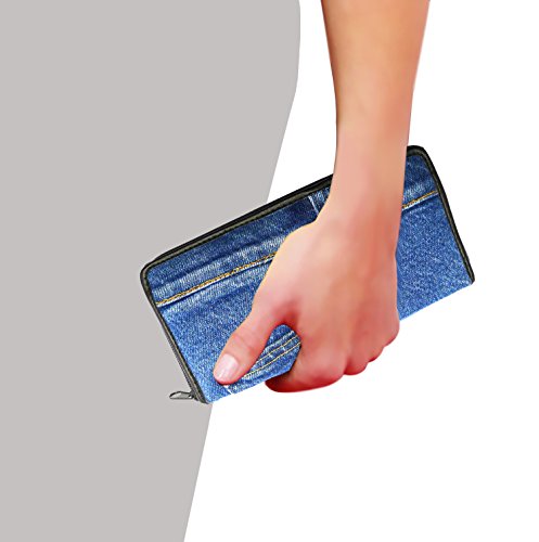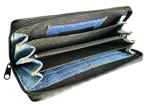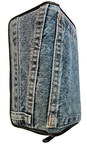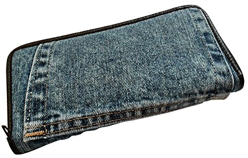 Bijoux De Ja Women Blue Denim Money Zip Around Wallet Wristlet Purse Clutch