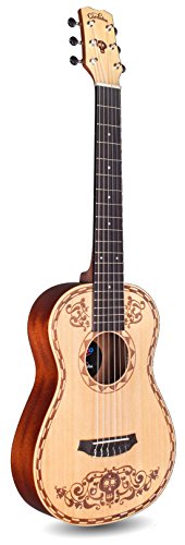 Studio : Cordoba Music Group Publisher : Cordoba Music Group Binding : Electronics Product Description Embark on a musical adventure with the Mini, a fun travel-size nylon string guitar inspired by?Coco, an all new film by Disney Pixar. Perfectly sized for life's adventures (580mm or 22.8” scale length) and with a durable satin finish, the Mini retains the playability of a full size guitar without losing its impressively loud voice. Built with a spruce top and mahogany back and sides and in standard E tuning, the Mini's tone is bright and full. The beautiful laser-etched design is inspired by the guitars and Mexican heritage featured throughout the film. Comes with a Cordoba gig bag and guitar strap. 0