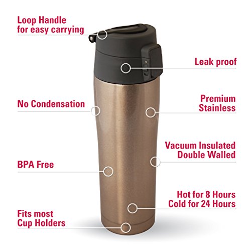 -. Brand : MIRA Brands -. Label : Mira Brands -. Manufacturer : Mira Brands -. ProductGroup : Kitchen -. ProductTypeName : KITCHEN -. Publisher : Mira Brands -. Studio : Mira Brands -. Title : MIRA Double Walled Vacuum Insulated Stainless Steel Travel Mug for Coffee Tea, 16 oz, Flip Lid with lock, Carry Loop, Keeps Drinks Hot or Cold (Multiple Colors)