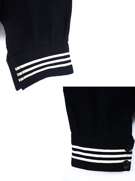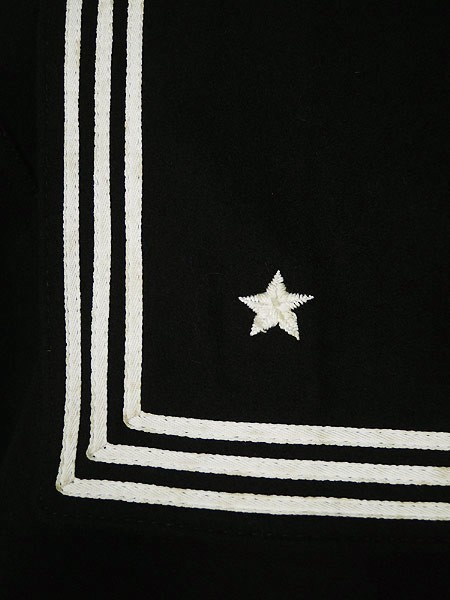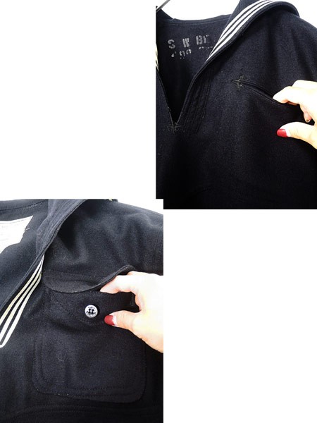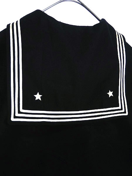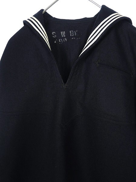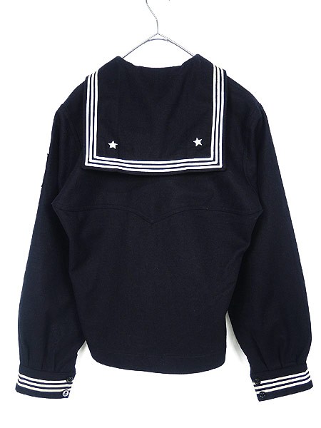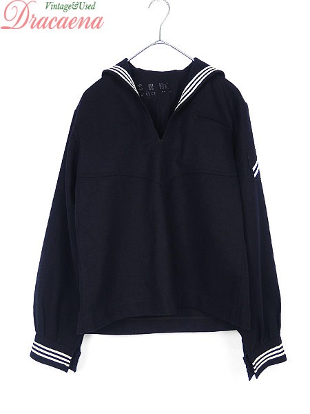 Ladies ブランド NAVAL CLOTHING DEPOT カラー紺 メール便不可 コンディション★★★ 素材ウール 表記サイズ- スタッフコメント50s位ヴィンテージセーラーシャツ。ウール素材、プルオーバーデザイン。セーラーの☆マークが可愛い1枚。白ライン全体、星刺しゅうにシミあり。 実寸サイズ 着丈 62 cm 身幅 53 cm 肩幅 43 cm 袖丈 61 cm ※ウエスト・ヒップ以外は平置き採寸