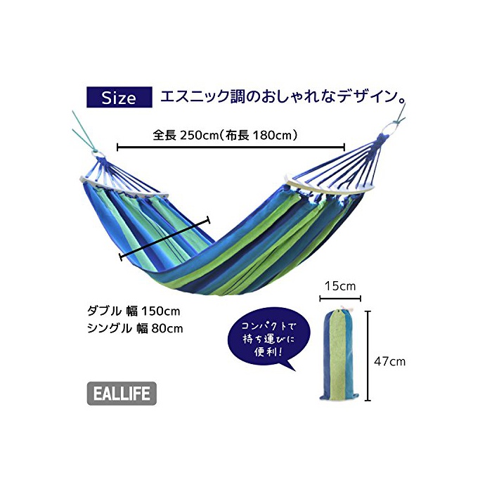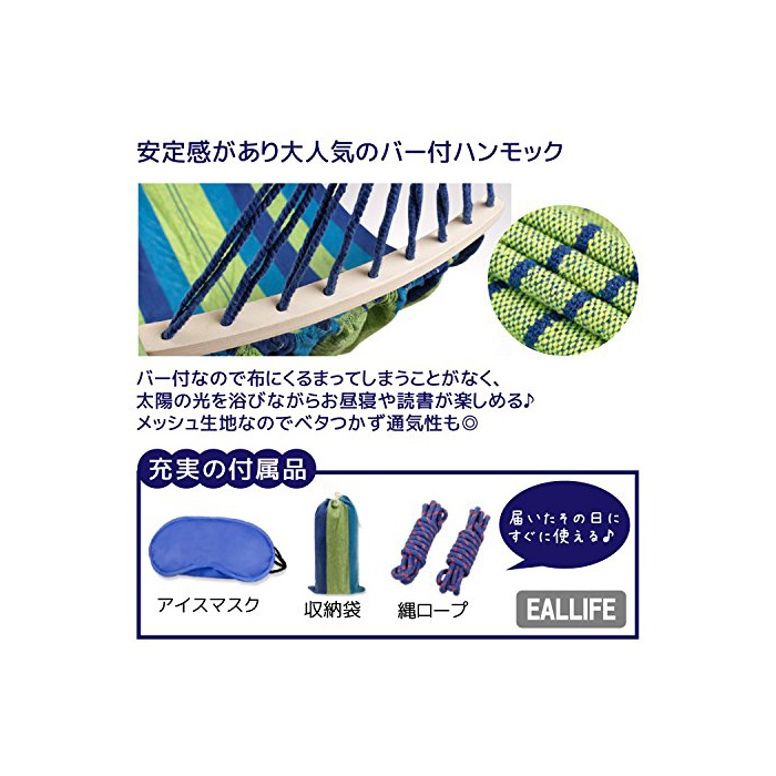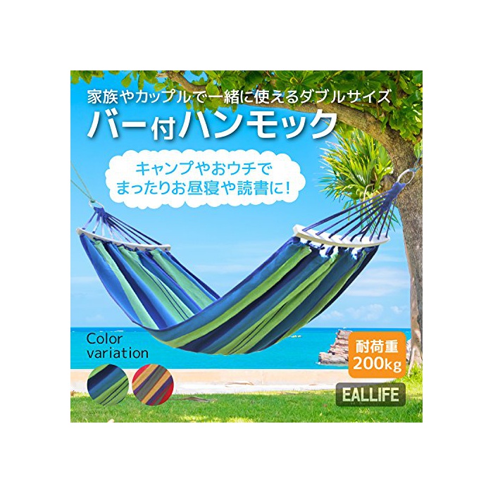 에어《루》공업 해먹(hammock) 바 부착 가을의 독서에 넉넉하게 해먹(hammock)에 여유만만 기분 천연목 2명으로 사용 할 수 있는 더블 사이즈 (고정 로프 아이마스《구》 수납 대부)